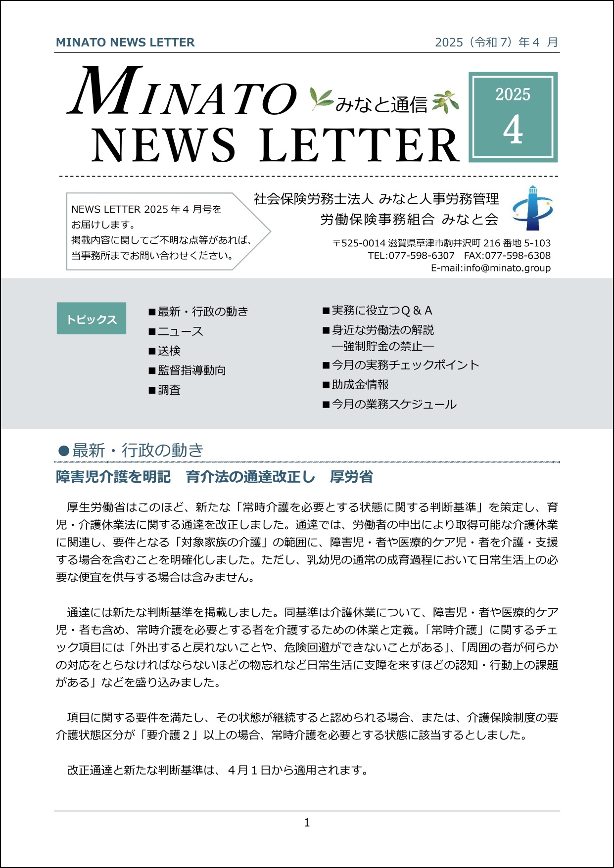 みなと通信R7.4月号を掲載しました(2025/3/20)
