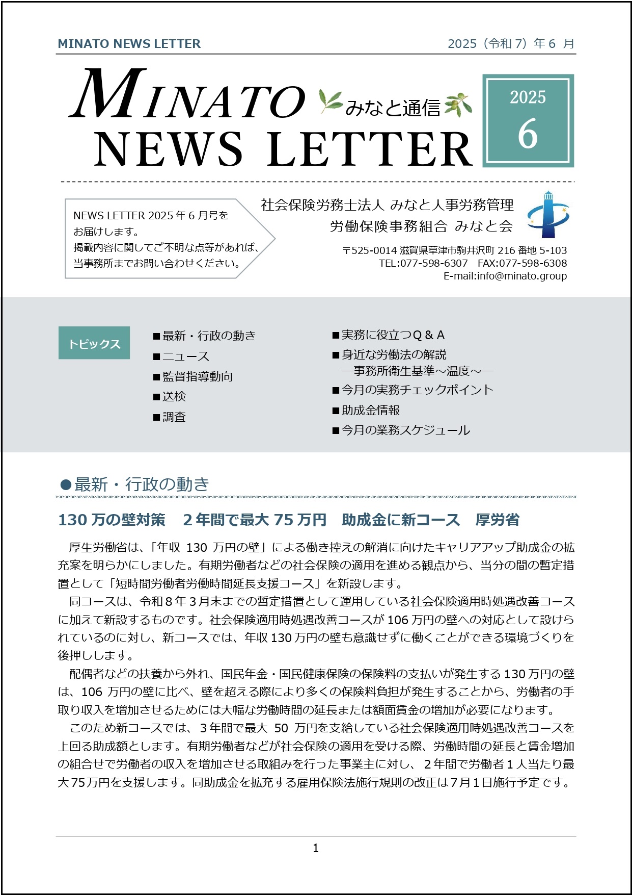 みなと通信R7.6月号を掲載しました(2025/5/20)