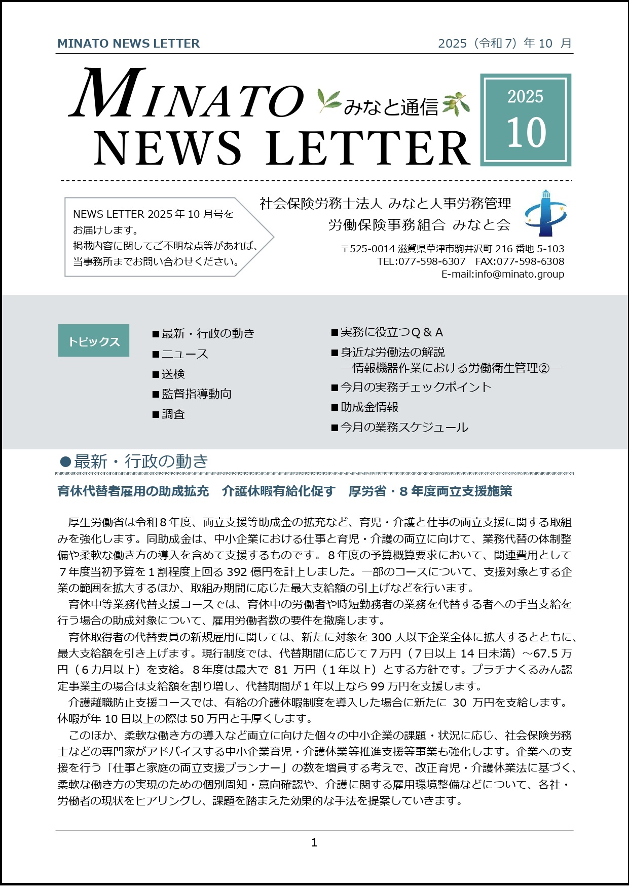 みなと通信R7.10月号を掲載しました(2025/9/20)